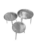 این میزها به روش ریختهگری دستساز تولید شدهاند و بههمین دلیل کیفیت ساخت بالا، دوام طولانی و ظاهری حرفهای دارند. پایهها بهصورت پیچی و بازشونده هستند و مونتاژ آسانی دارند. ابعاد سهسایز مجموعه بهصورت زیر است: