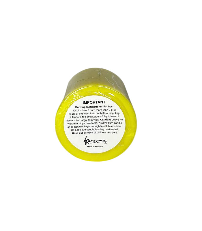 شمع استوانه‌ای برند Kameyama ساخت مالزی با رنگ زرد روشن زیبا و مدت زمان سوخت 30  ساعت، انتخابی ایده‌آل برای دکوراسیون مدرن و استفاده روزمره.