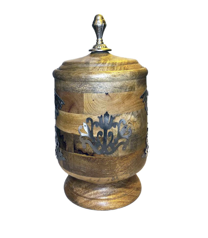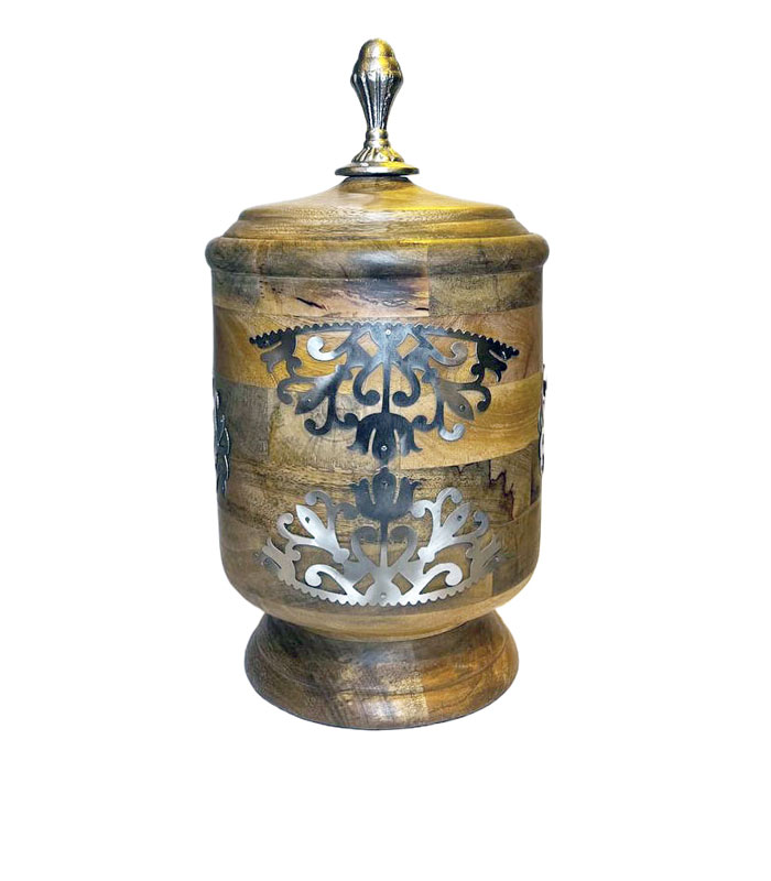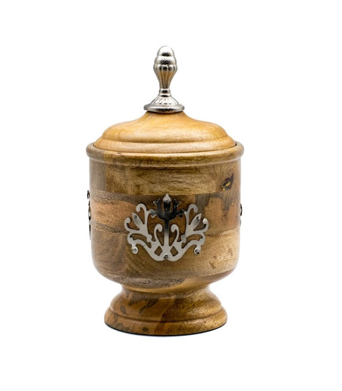 جنس بدنه: چوب طبیعی انبه تزئین شده با گل فلزی برنجی