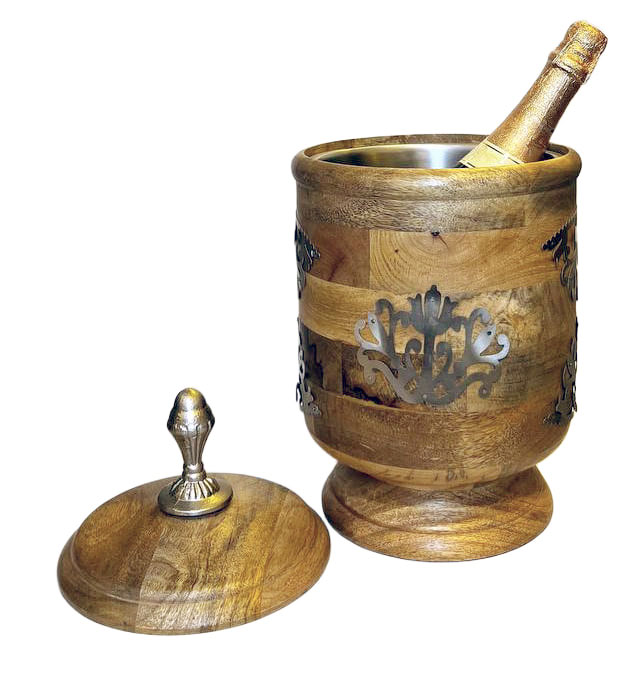 ظرف یخ و بطری ساختهشده از چوب طبیعی انبه، ترکیبی از طراحی سنتی و کاربردی با متریالی اصیل و گرم. این ظرف دستساز با پوشش داخلی آلومینیومی، به شما امکان میدهد نوشیدنیها را خنک و باکیفیت سرو کنید و جلوهای خاص و لوکس به پذیرایی شما ببخشد.