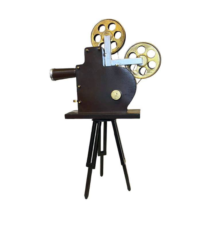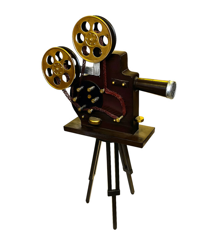 ماکت فلزی آپارات با طراحی نوستالژیک و بدنهی فلزی و سهپایه ، انتخابی خاص برای دکوراسیونهای صنعتی، مدرن یا عاشقان سینما.
